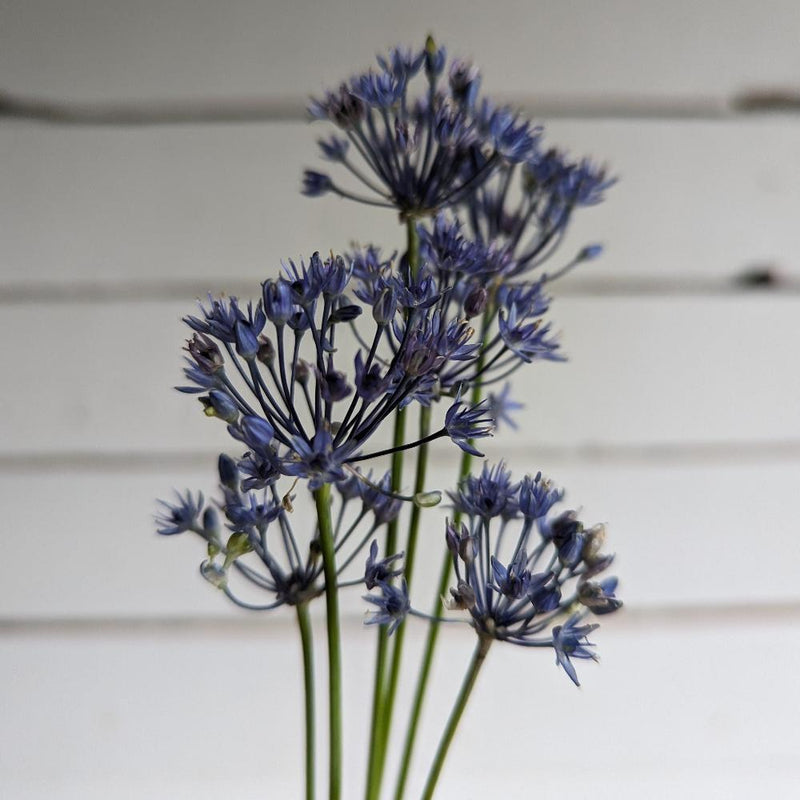 Couleur extraordinaire, hors du commun et rare à avoir en bouquet. Le petit bleu pâle de cette variété d'allium est doux et invitant. Il s'agence parfaitement avec des accents d'orange brulé, de pêche et d'abricot.