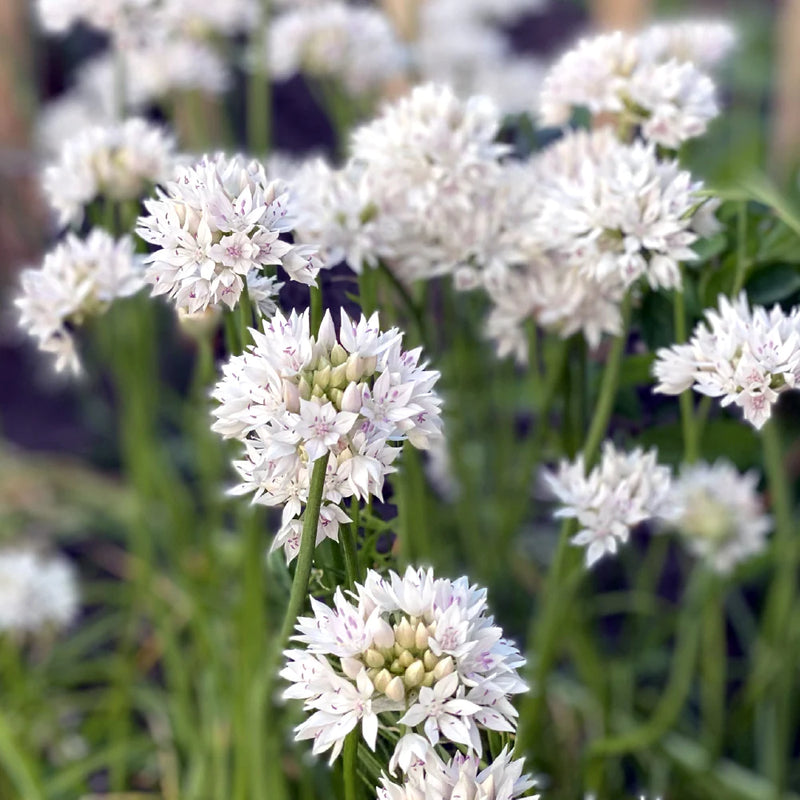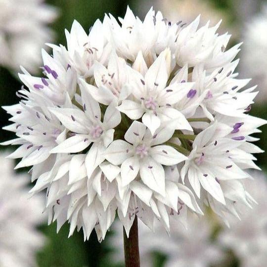 Cette variété d'allium est vraiment trop mignonne. Ces petites fleurs blanches poudrées et lilas pâles savent charmer chaque regard qui se pose sur elles.
