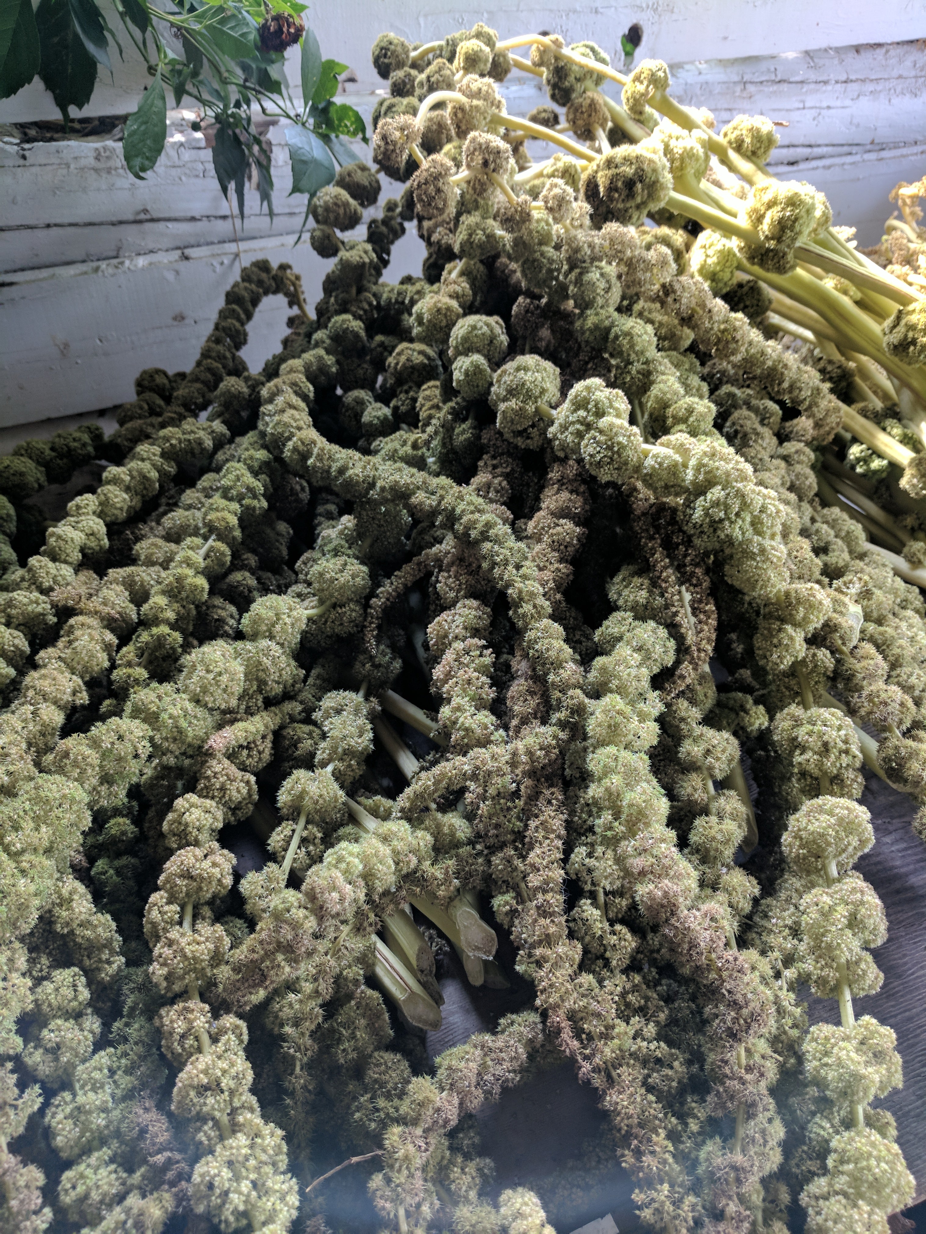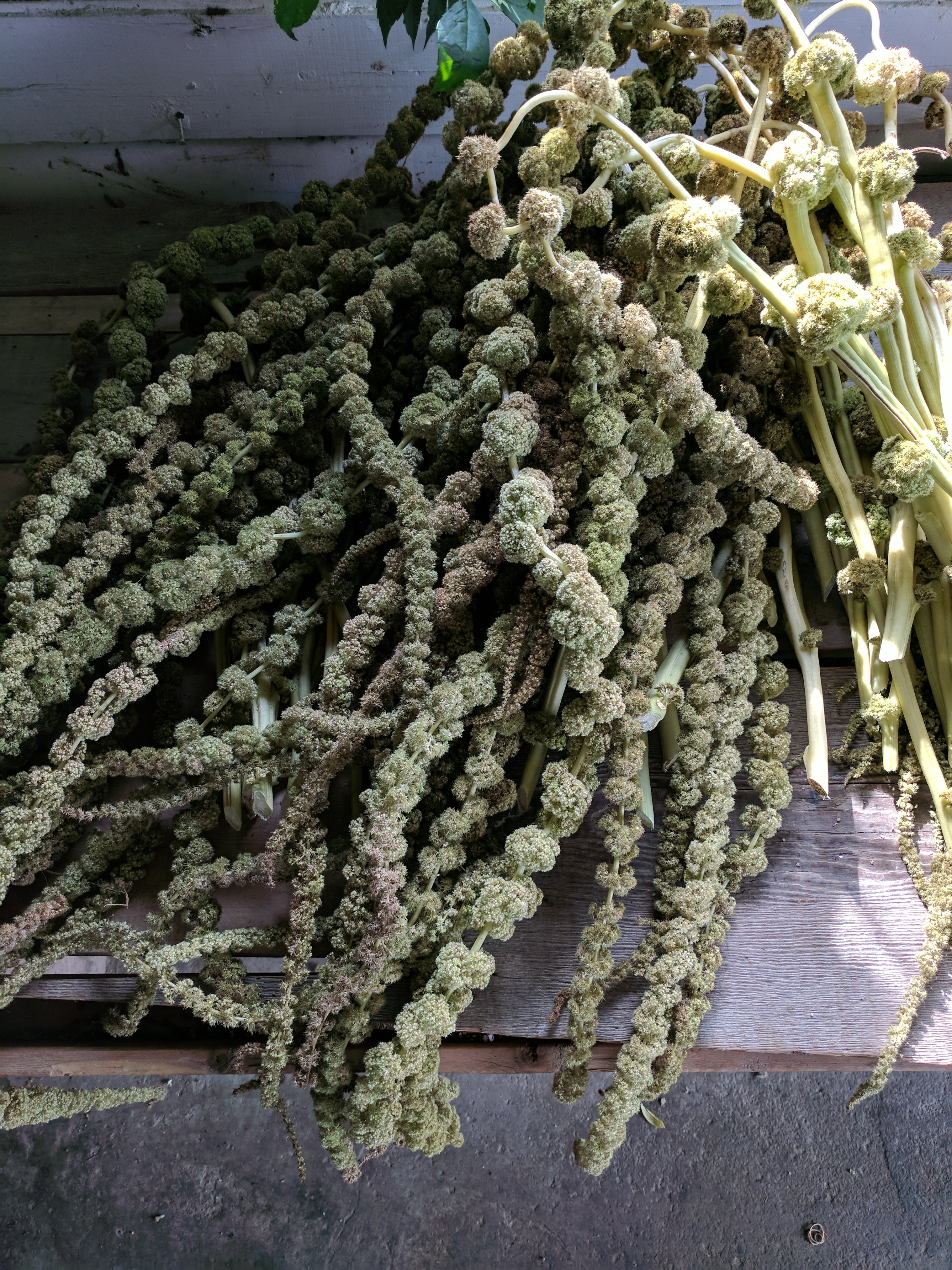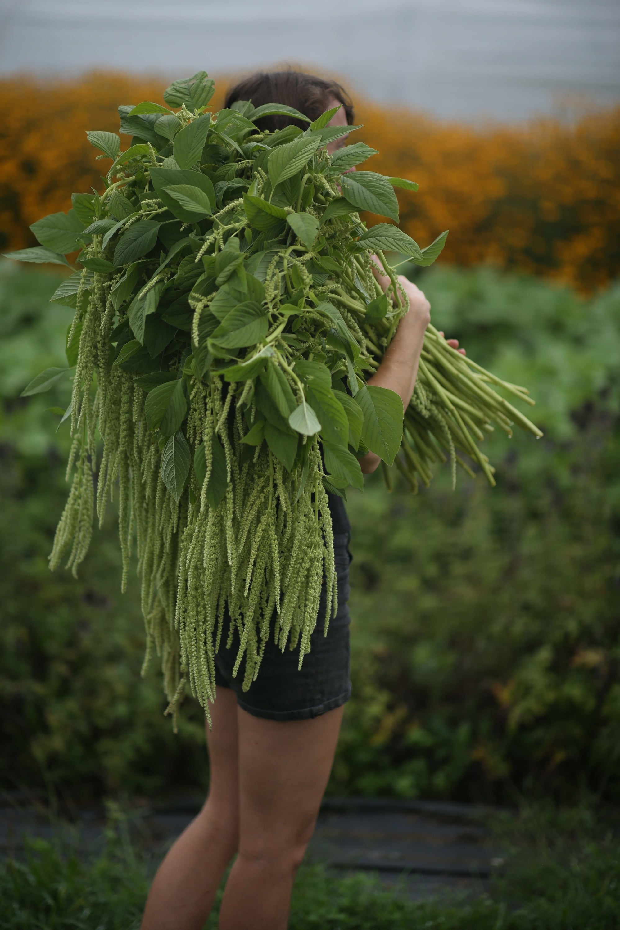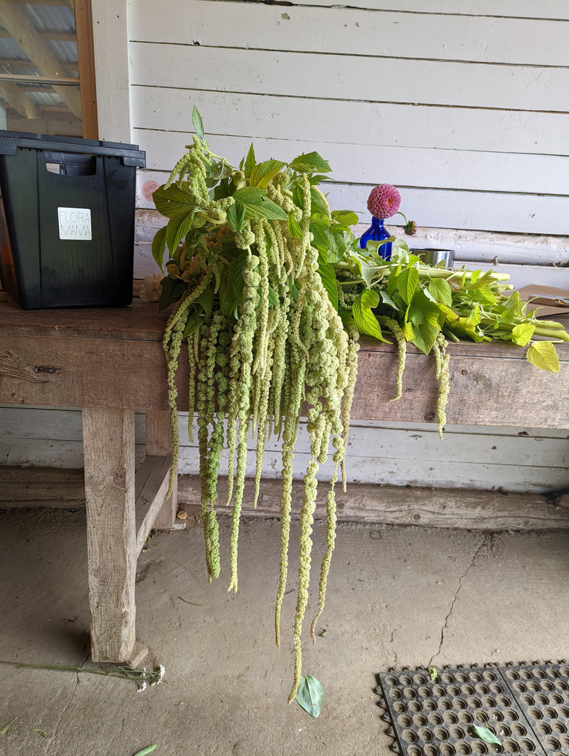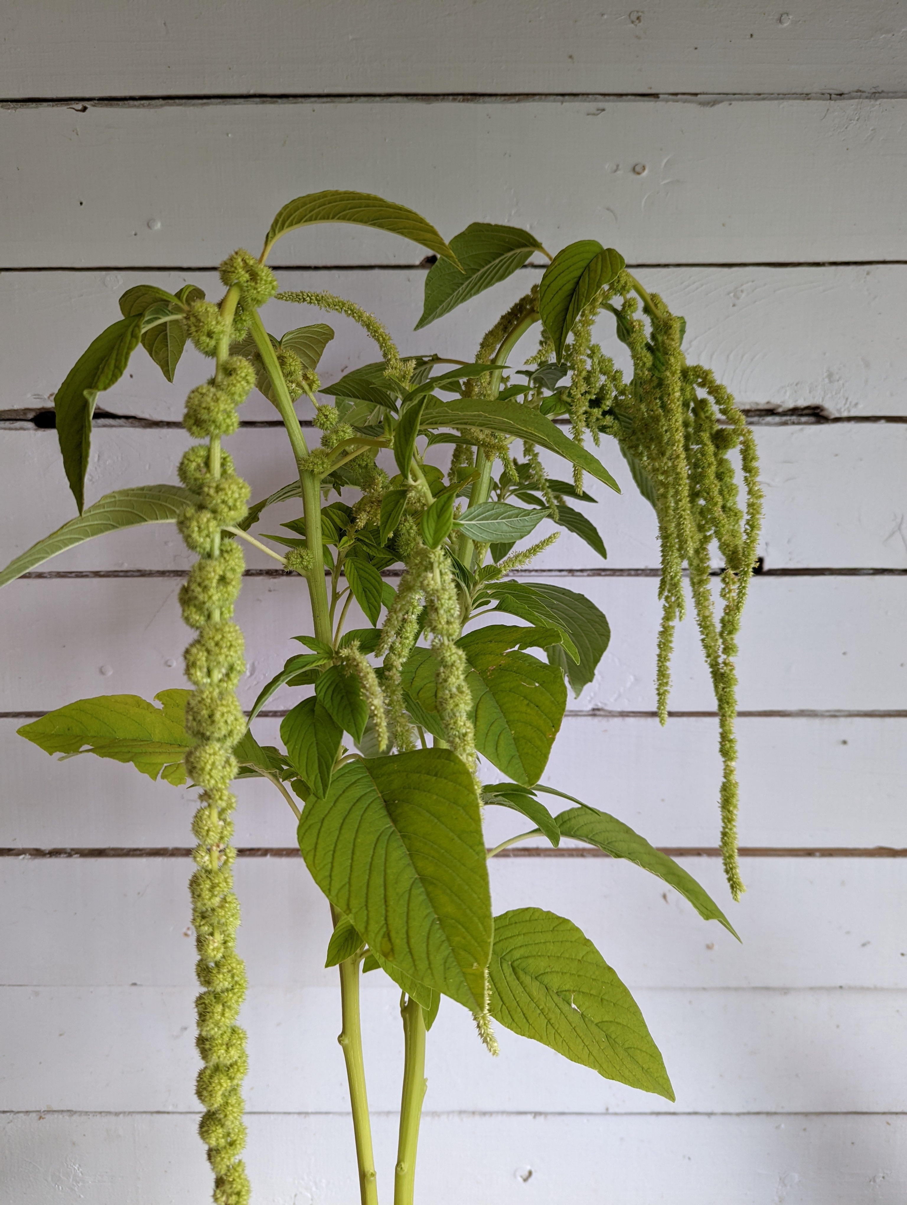 Récolter à longueur désirée une fois que la hampe florale est visible. Pour profiter du plein potentiel de l'amarante, attendre que les fleurs soient bien allongées. Il est préférable d'enlever les feuilles car elles flétriront rapidement.