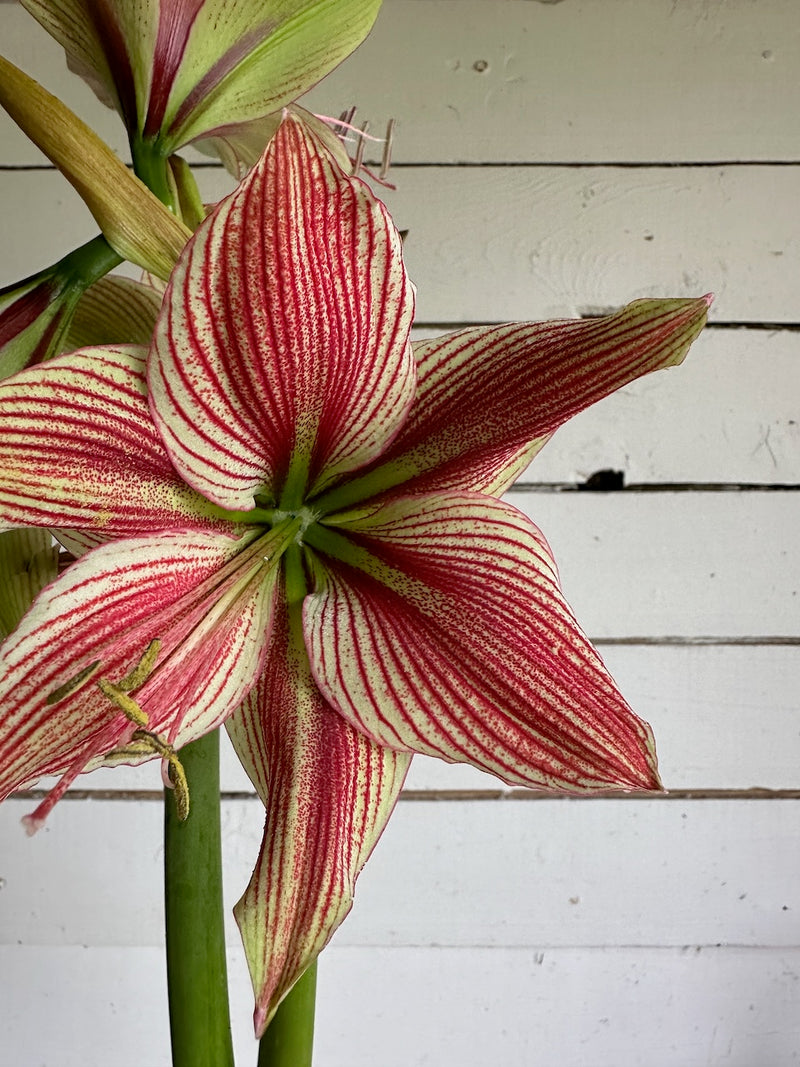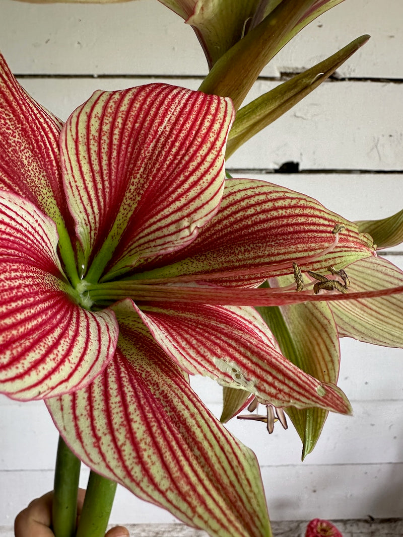 Cette variété est vraiment unique avec ses gros pétales striés et bien dodus.