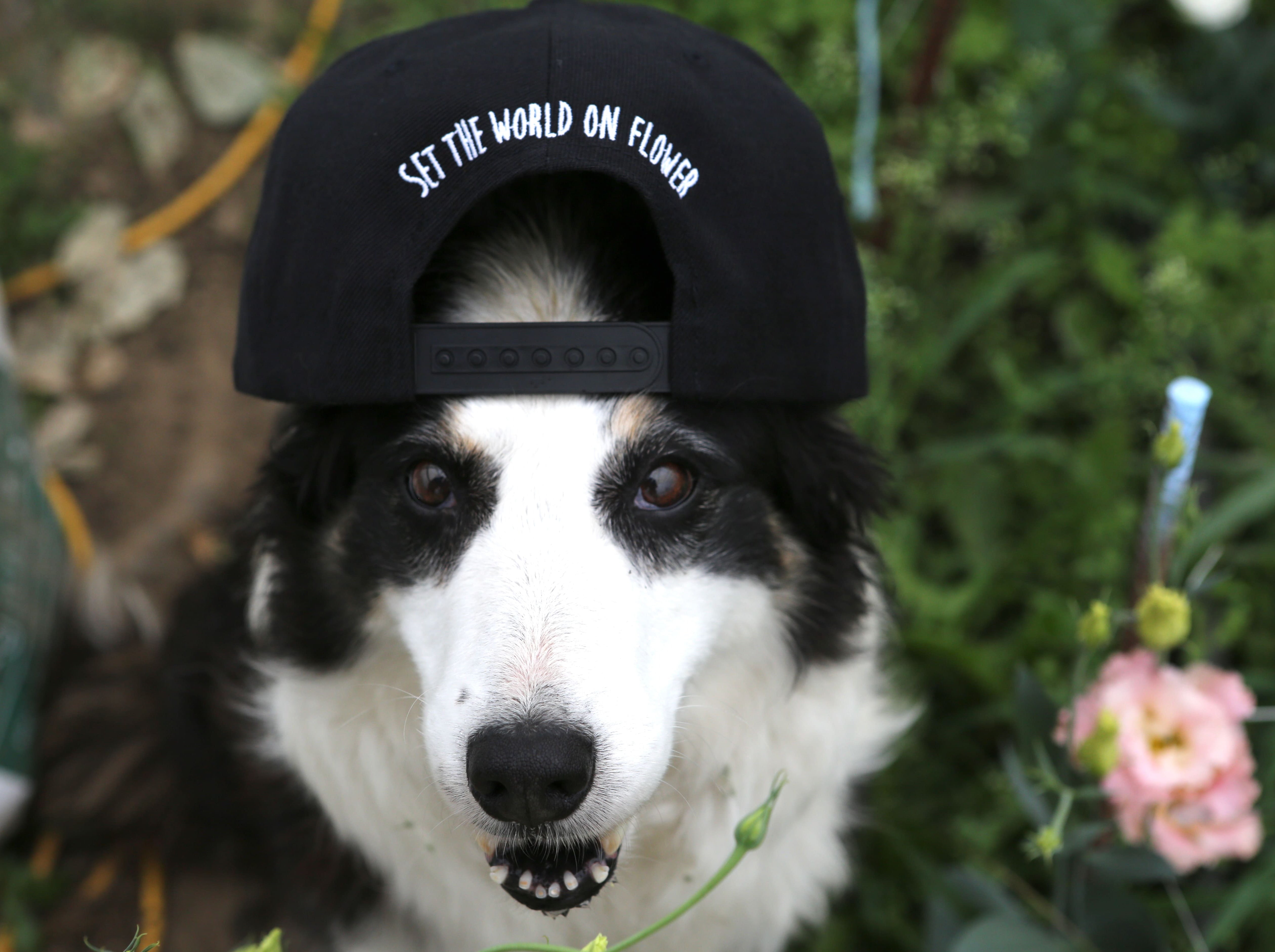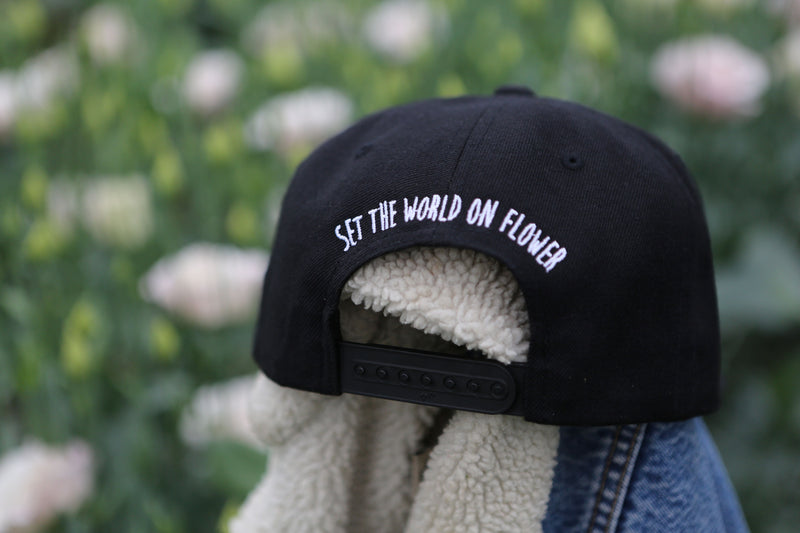 Modèle "snapback", logo devant et le derrière est en coton avec notre slogan "Set the world on flower"!