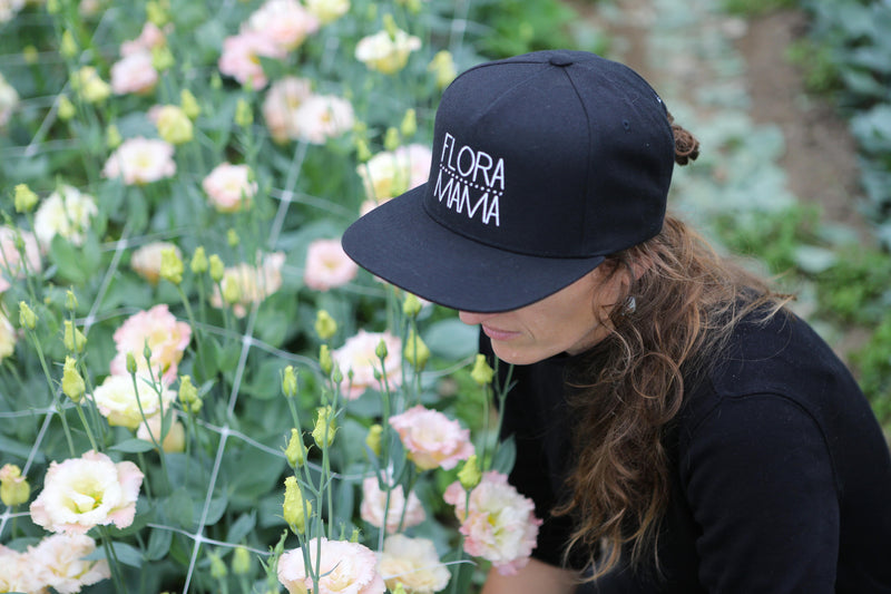 Casquette à l'effigie de votre ferme florale préférée, brodée à Montréal.