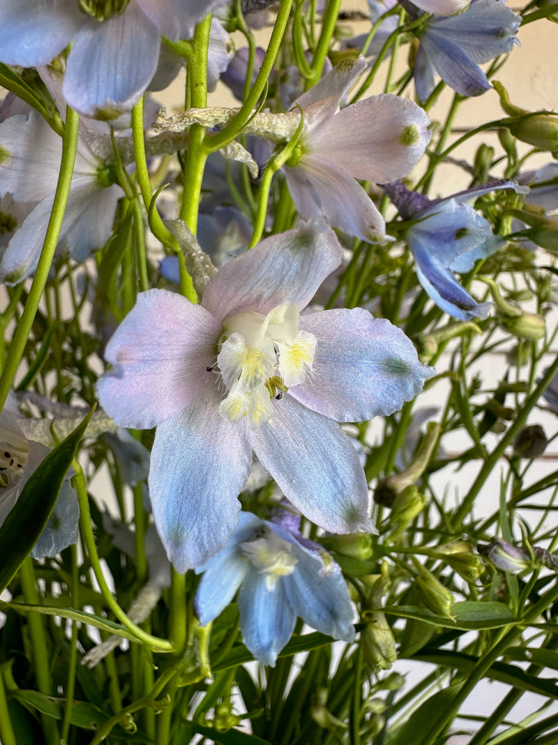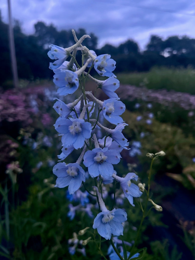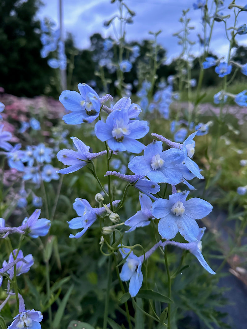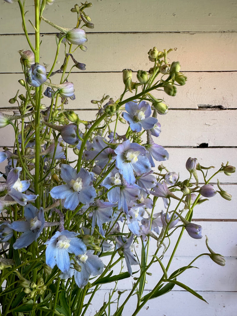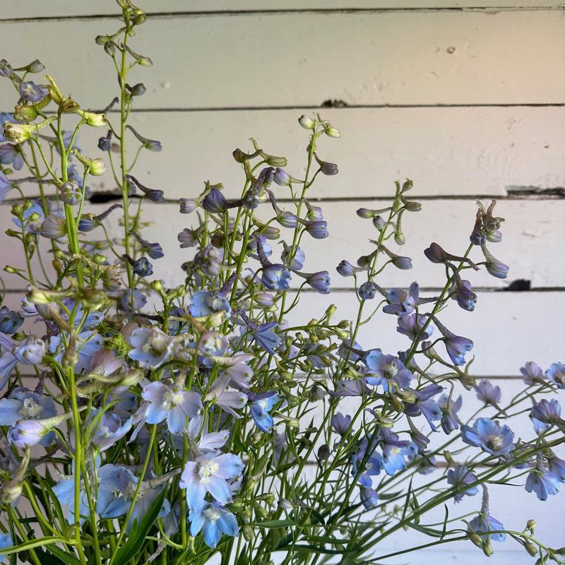 Ce delphinium, l'une des variétés les plus robustes, produit des tiges élancées et des fleurs bleu ciel délicates, idéales pour ajouter de la légèreté aux jardins et bouquets. Bien qu'il soit souvent cultivé comme une annuelle en floriculture, il est en réalité vivace dans les zones 3 à 7, offrant une floraison spectaculaire dès la première année. Attirant les abeilles et les papillons, il peut nécessiter un soutien pour éviter que ses tiges ne se plient sous la pluie ou le vent.