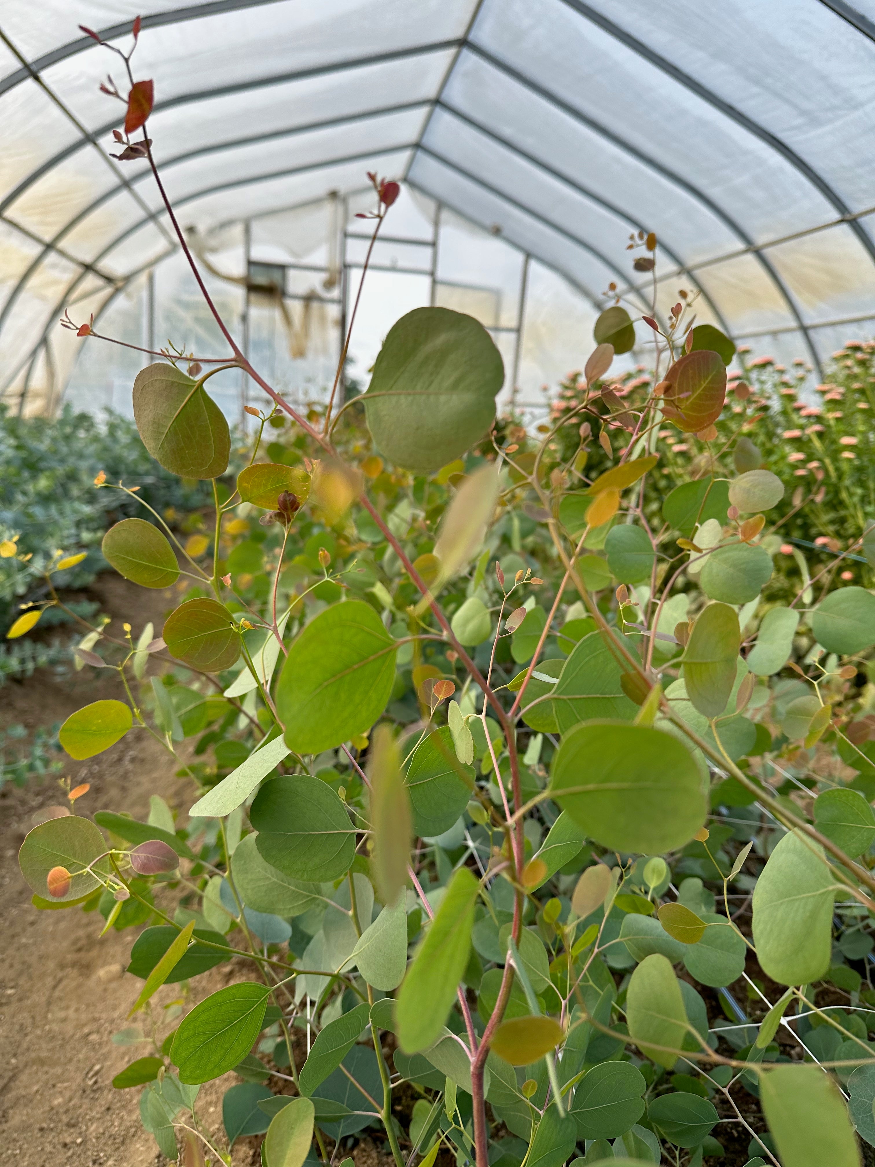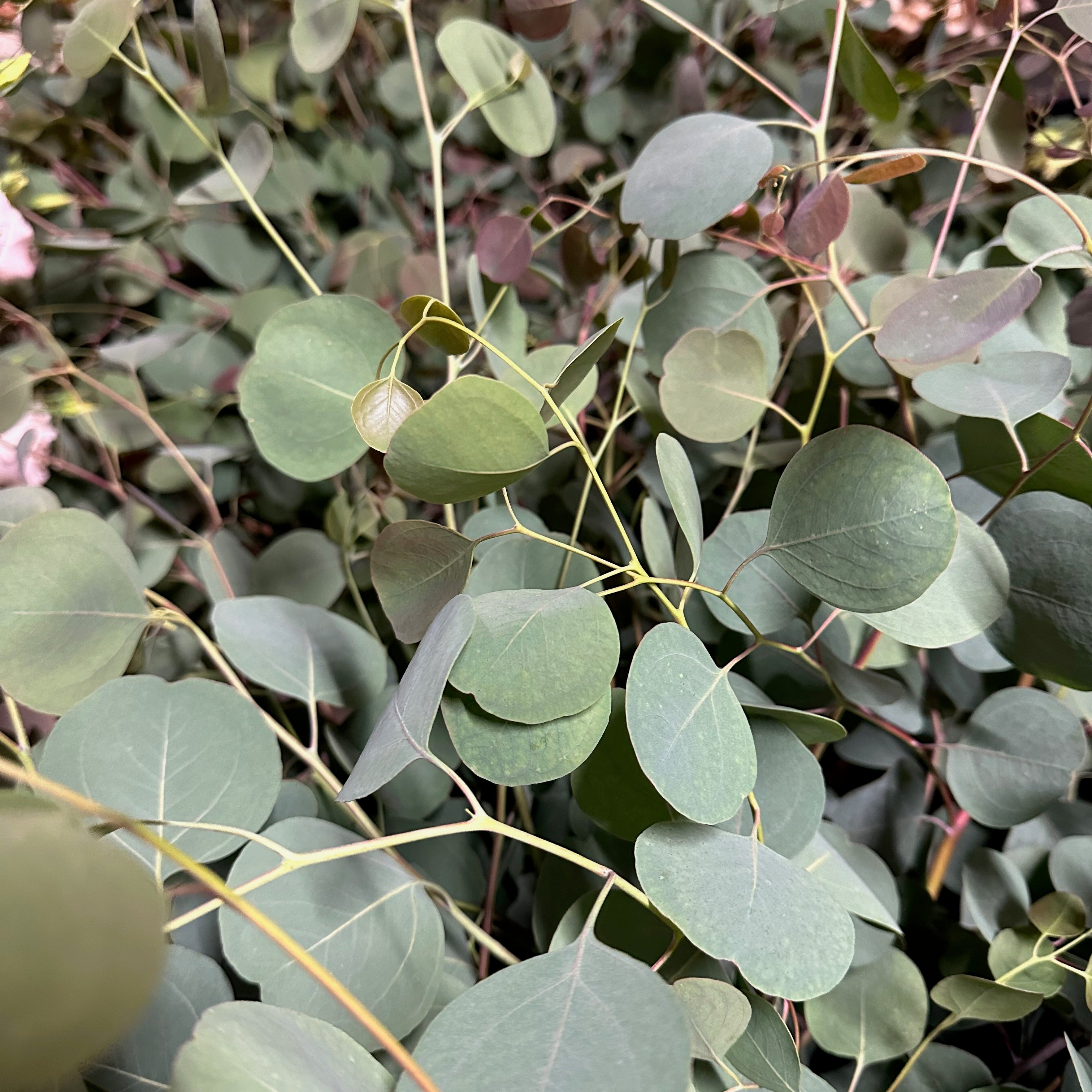 Aussi appelé Silver Dollar, cet eucalyptus unique a des feuilles en forme de feuilles de Ginkgo sur des tiges rouge/pourpres/bronze. Chaque plant produit de nombreuses tiges qui sont parfaites pour la composition florale. L'eucalyptus peut également être séché.
