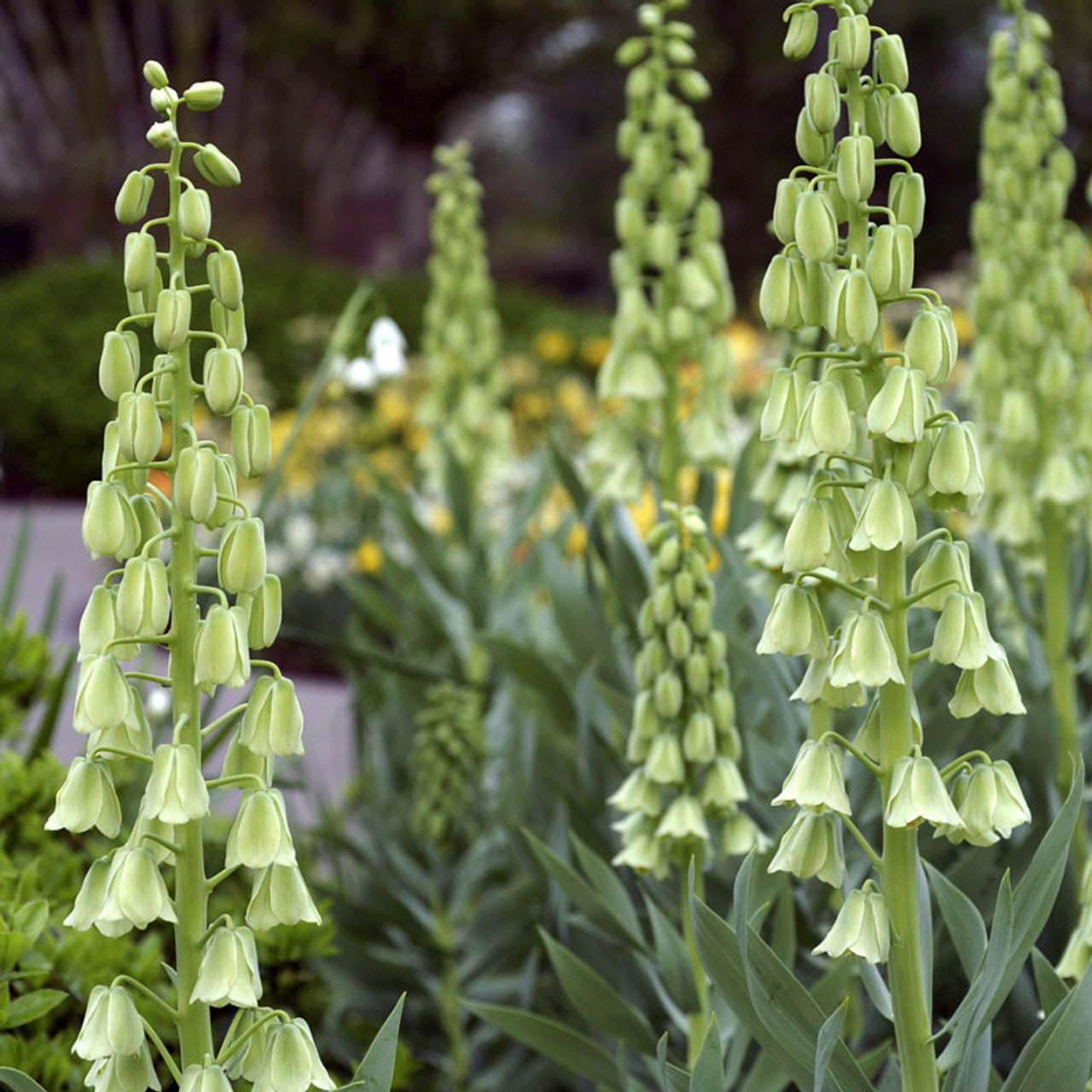Les fritillaires Ivory Bells sont un de nos plus gros coups de coeur. Cette variété, d'un grand raffinement, en vaut l'investissement en nous récompensant avec des tiges époustouflantes extra longues de fleurs en forme de clochettes vertes pomme qui se transforment délicatement en ivoire crémeux à mesure qu’elles mûrissent. Les feuilles gris-vert sont aussi un bel ajout.