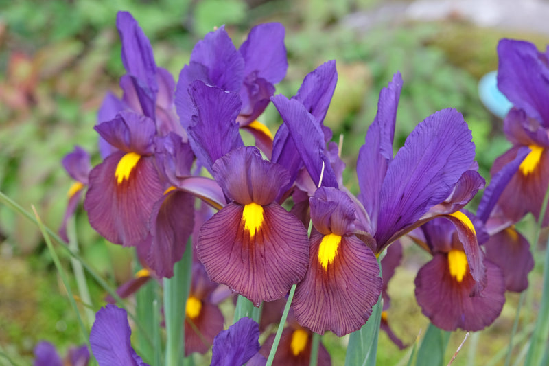 Des nuances spectaculaires de violet et de bourgogne avec un éclat jaune qui souligne la bouche de chacune des fleurs. Un ajout contrastant pour un jardin fleuri entre les fleurs de printemps et les fleurs d'été.