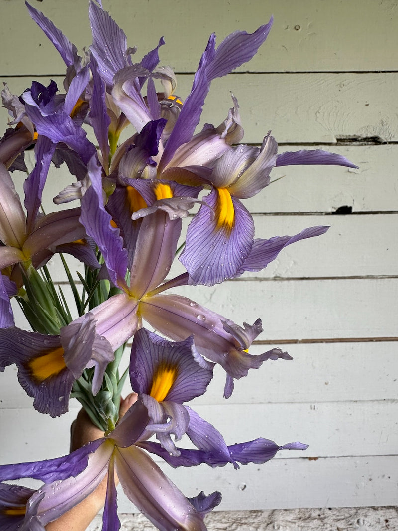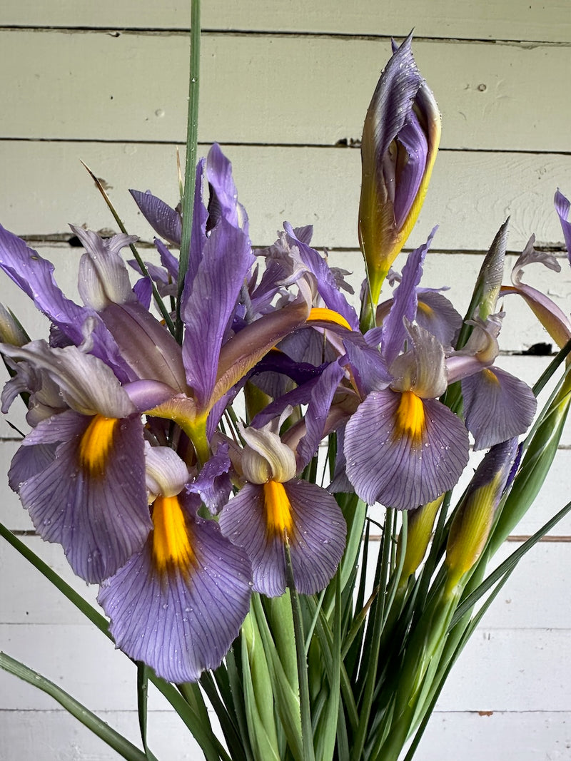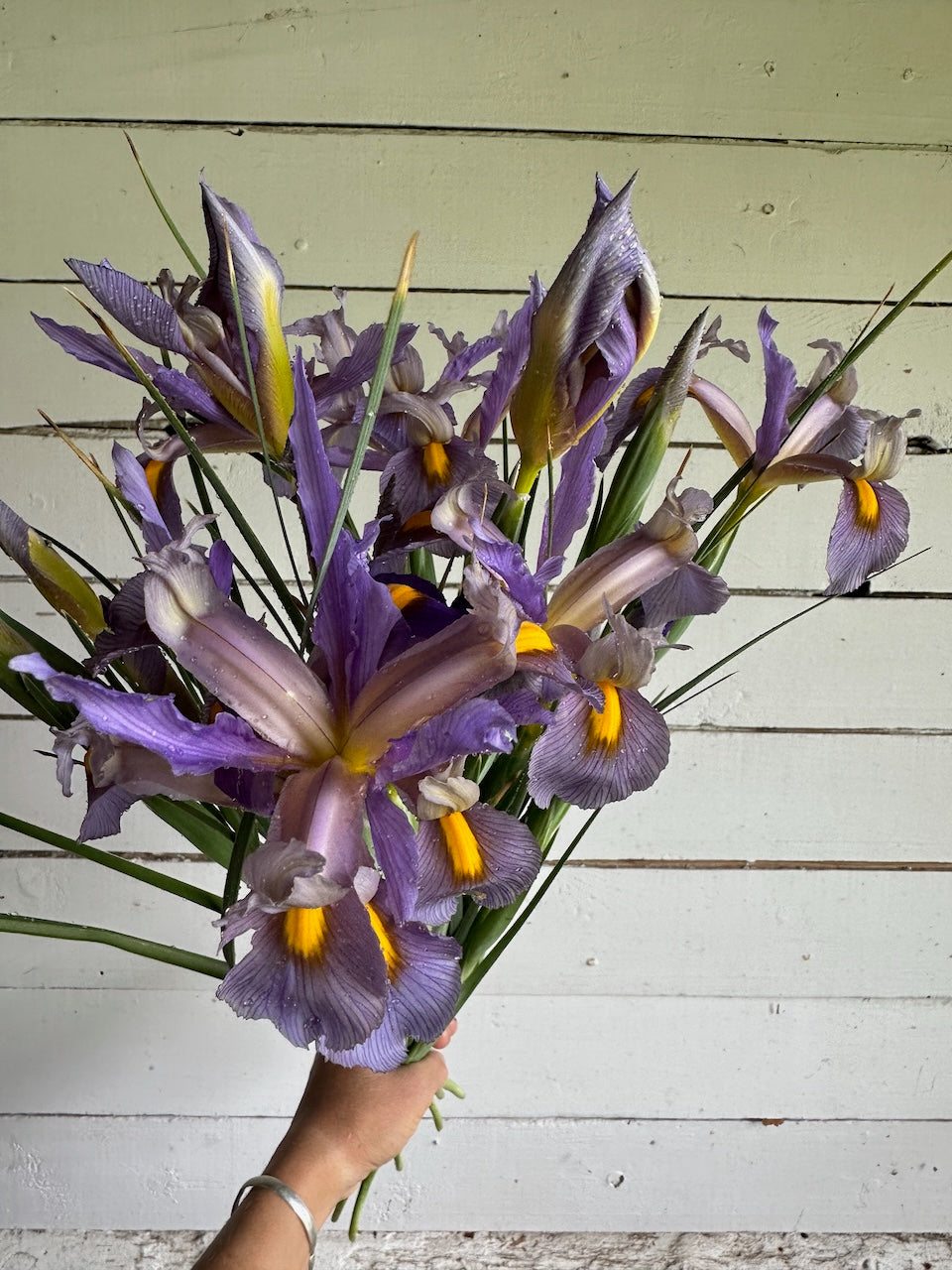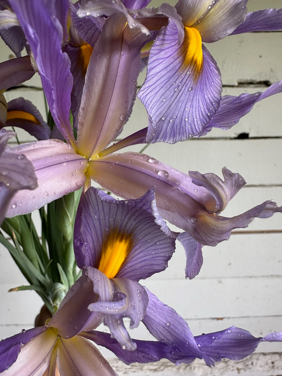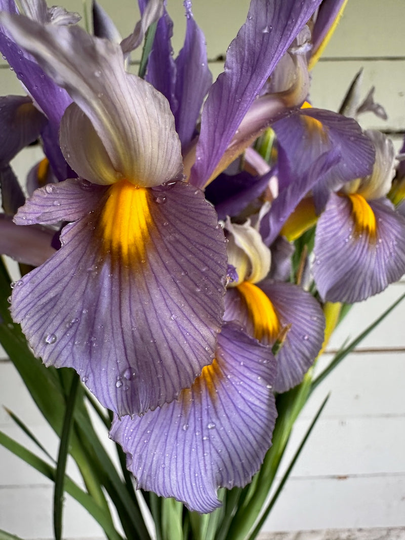 Douces teintes harmonieuses de lilas/lavande pâle et jaune soleil. Parfait pour décrocher un sourire à n'importe qui qui passe par là! Les iris bulbeux sont parmi les premières fleurs à éclore au printemps.