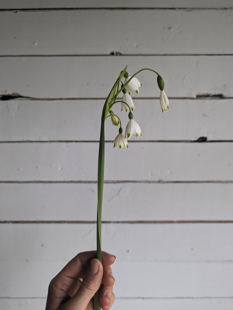 Magnifique floraison en clochettes blanches retombantes. Le leucojum est une fleur de choix pour ajouter de la profondeur, du dramatique, du poétique et de la magie à tout arrangement ou jardin.