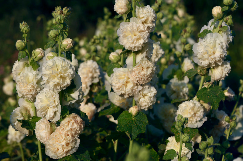 Cette variété de rose trémière produit sur de très grandes hampes florales de nombreuses fleurs rose/pêche absolument incroyables, qui illumine les bordures, crée des arrangements floraux dynamiques. Les plants se pérennisent très bien, c'est-à-dire que les fleurs, si elles ne sont pas récoltées, produiront ensuite des semence qui tomberont au sol et germeront la printemps suivant.