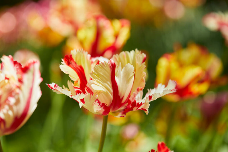 La variété de perroquet la plus funky qui nous met des étoiles dans les yeux. Cette tulipe possède des fleurs jaune tarte au citron meringuée avec des rainures incarnat et lime flash. Un must pour égayer vos jardins !
