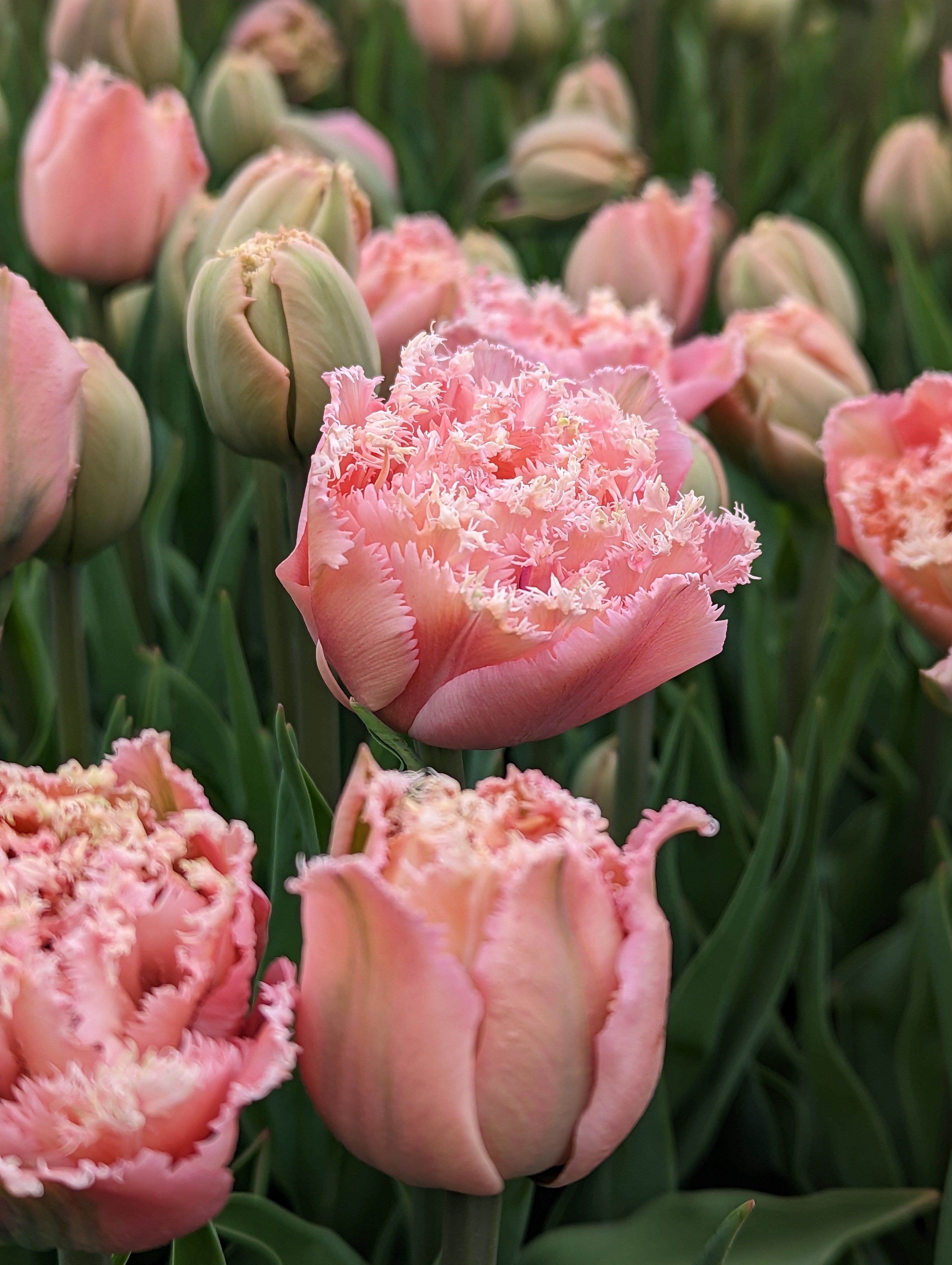 Nouvelle variété à l'essaie pour nous en 2023 et ça été un coup de coeur instantané. Nous adorons les tulipes frangées en général comme Queensland, Sensual Touch et Perth, mais Pink Magic a des teintes rosées bien particulières et parfaites. C'est ce rose antique très sophistiqué que nous retrouvons avec joie, comme les fameuses tulipes Belle Epoque.