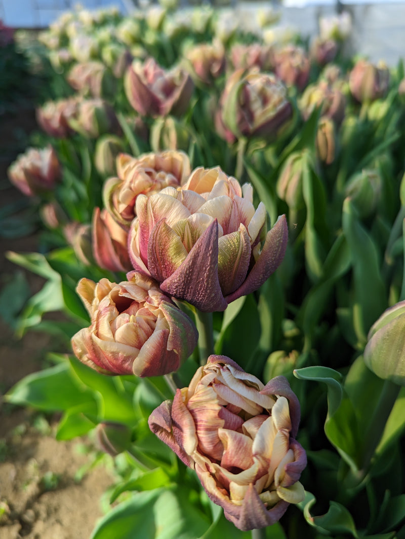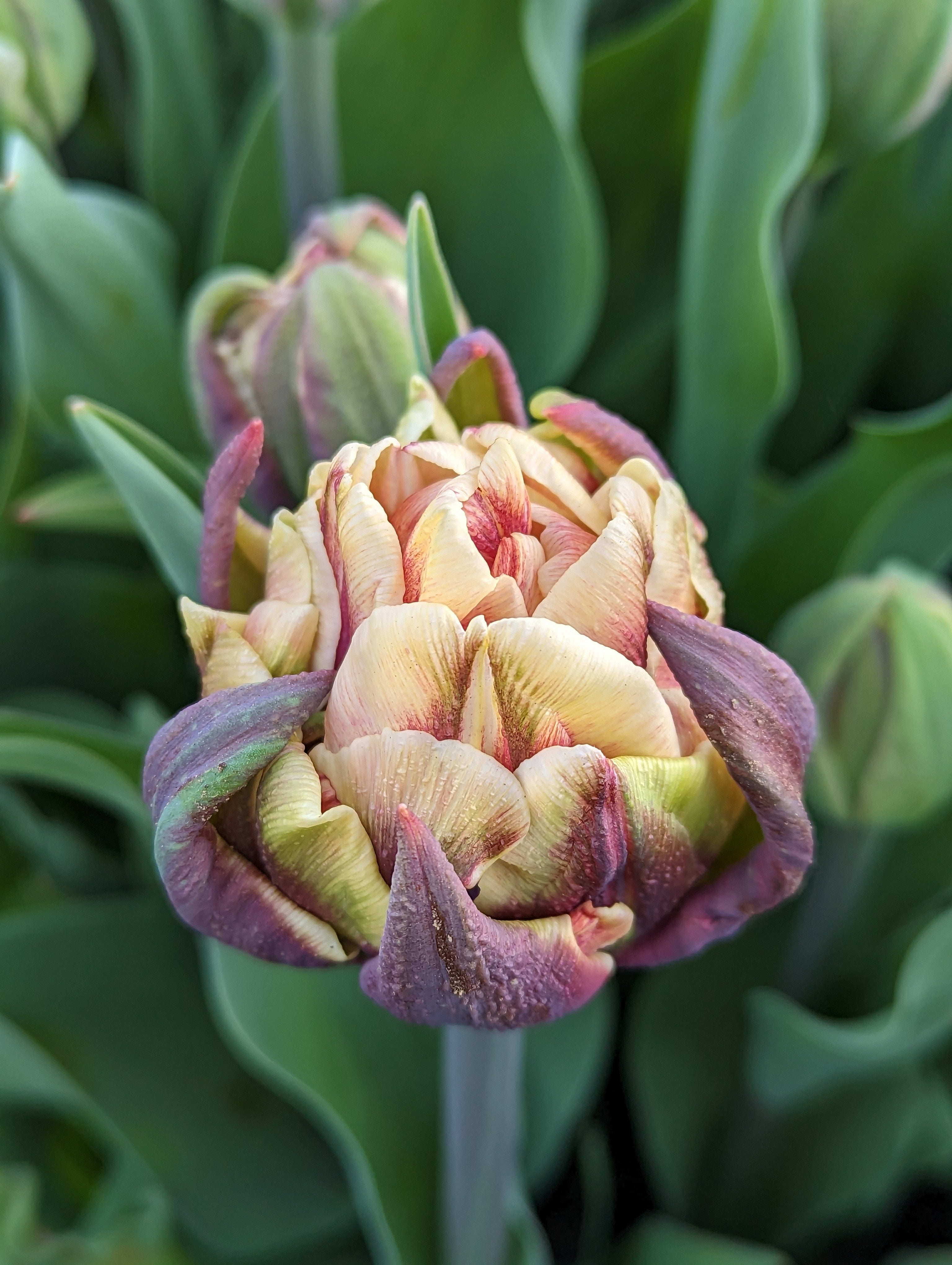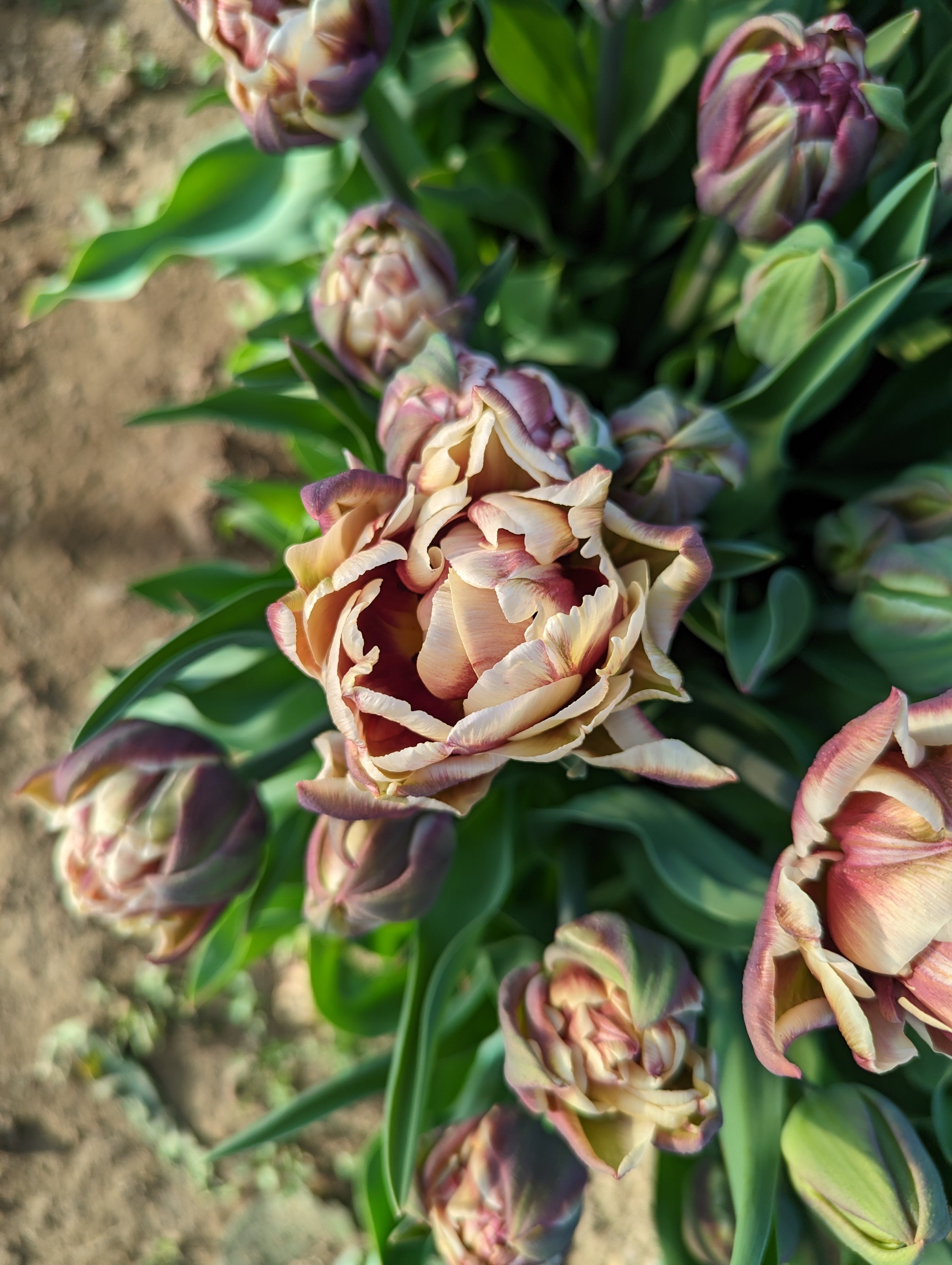 Nouvelle à l'essaie au printemps 2023 elle fût ma plus grande surprise. Ses teintes sont super rares à trouver dans une seule fleur. Elle arbore des teintes de prune, caramel, sable et rose antique. Une combinaison absolument parfaite. Il faut la laisser ouvrir pleinement pour être complètement époustouflé par sa beauté.